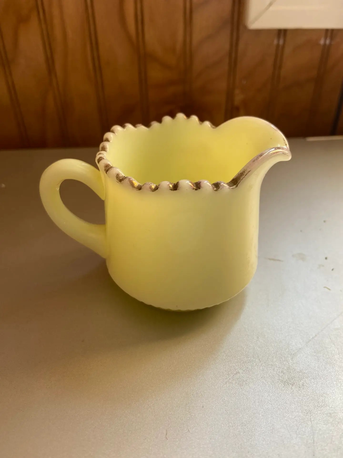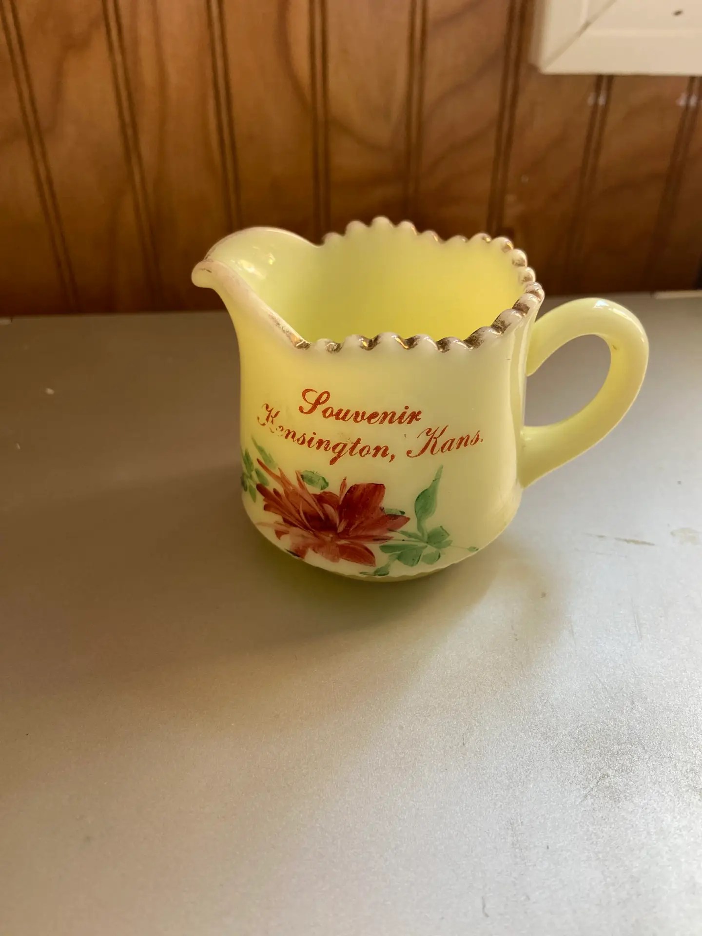 Be the first to review “Kensington, Kansas Uranium Custard RIBBED HEISEY Souvenir Glass CREAMER”