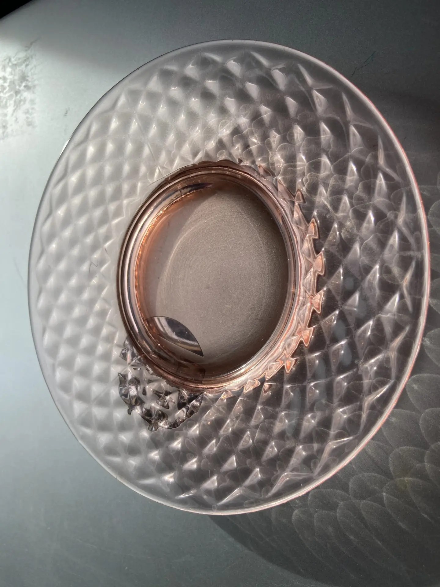 Set of 2 Pink Depression “Diamond Quilted” plates from Imperial Glass Co.