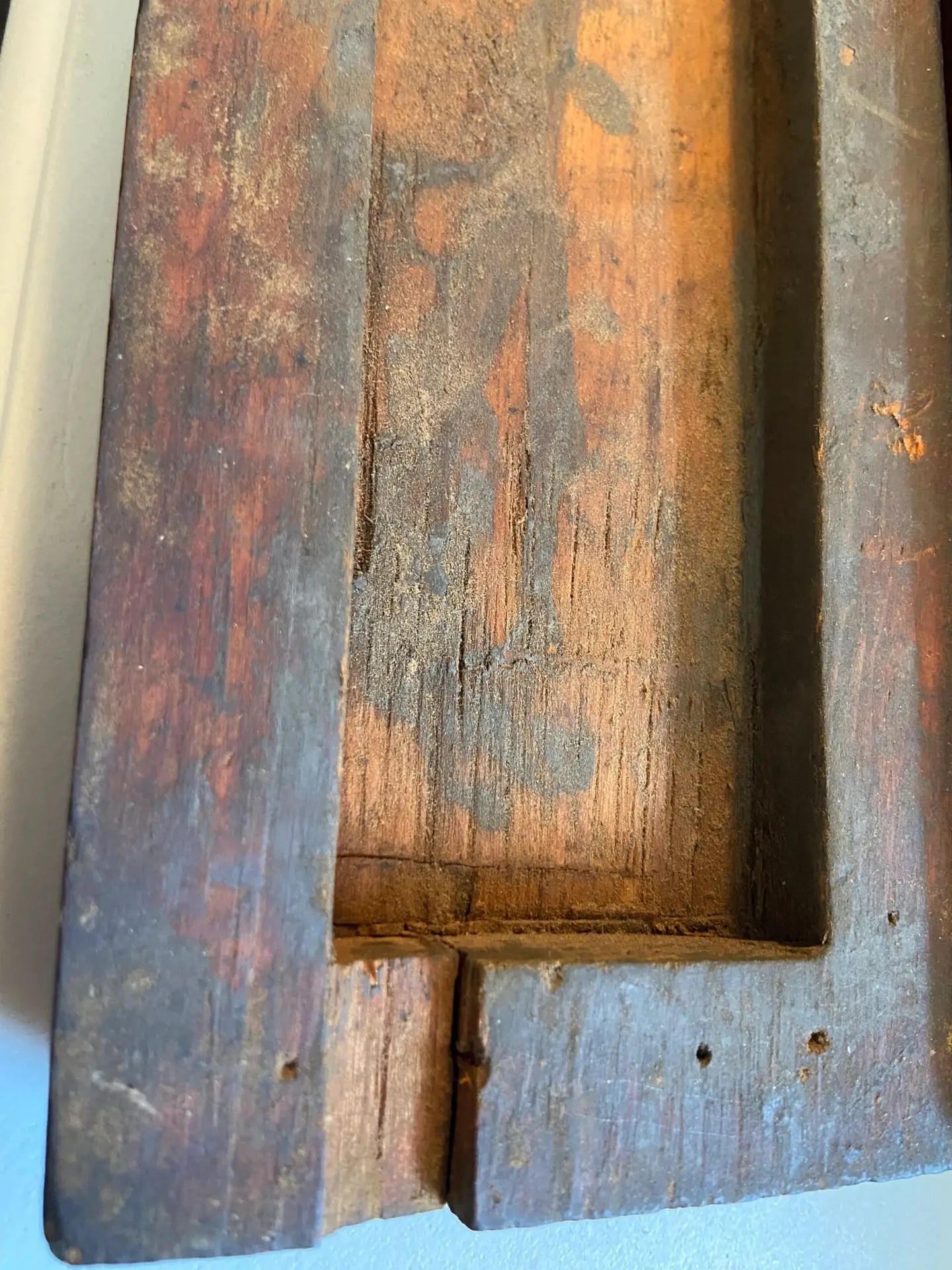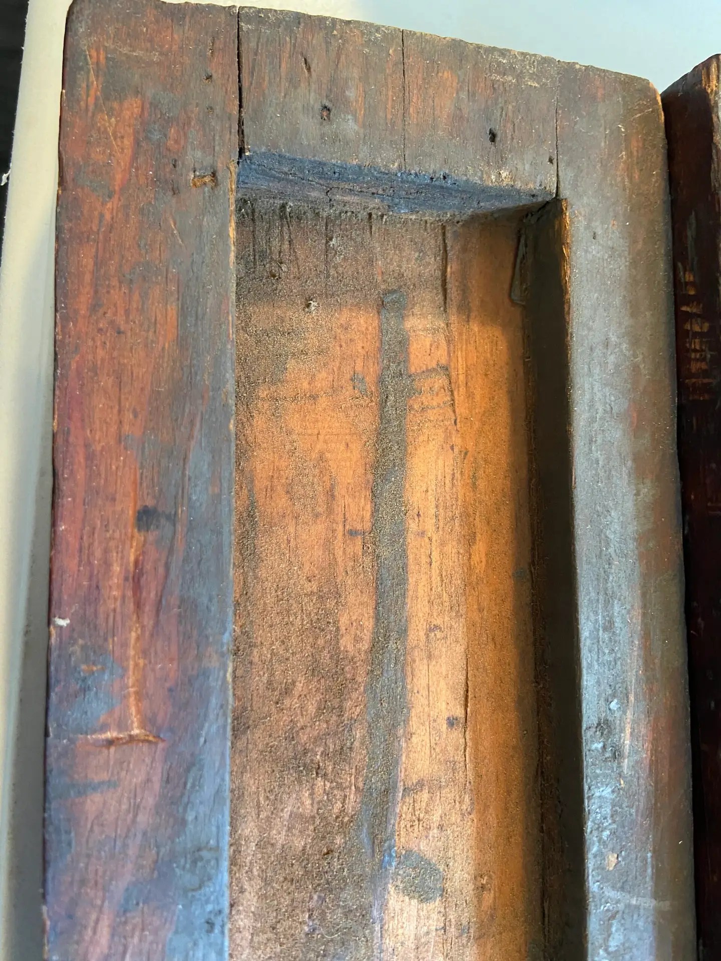 This is a Vintage Sharpening Stone in a Wood Box Case that is used.  It almost resembles a closed miniature coffin, which caught my eye.  The wet stone does not easily come out, and I did not try to force it.  It measures appr. 9 3/4″ long, 3 3/4″ wide and 2 3/4″ tall at the tallest point.