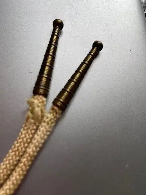 This is 14 1/2 inches long (total of 29 inches long). It is metal tips but there is fraying where the metal tip connects to the cord. Please look carefully at the pictures to see condition.